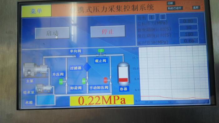 水壓測試裝置:由便攜式壓力采集控制儀、電氣控制柜、電動試壓泵、高壓自控閥匯、低壓強制進水過濾裝置、不銹鋼水箱、鋼結構集成箱體等組成,可對航天軍品等壓力容器作水壓密封測試,系統(tǒng)自動完成升壓、保壓、卸壓過程,現場實時出具壓力曲線報表,完整記錄整個水密封實驗過程。同時該裝置也可用于其它各類工件、閥門、鋼瓶、消防器材等作氣密封試驗。