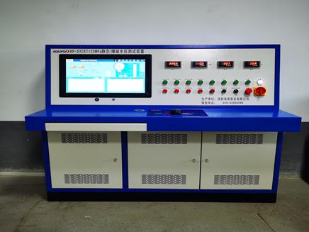 靜態(tài)及爆破水壓測試裝置:由海普壓力測試系統(tǒng)、琴架式操作臺、電氣控制柜、電動高壓泵、控制閥匯、低壓強制進水過濾裝置、不銹鋼水箱、電動節(jié)流裝置、高壓蓄能器、流量計、集成箱體等組成,系統(tǒng)自動完成升壓、保壓、卸壓過程,現(xiàn)場實時出具壓力曲線報表,完整記錄整個水密封實驗過程。同時該裝置也可用于其它各類工件、閥門、鋼瓶、消防器材等作水密封耐壓試驗。