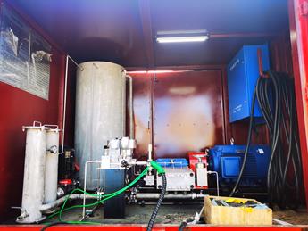 移動式井口試壓裝置(適用于野外作業(yè)):由海普專用壓力測試系統(tǒng)、車載式操作臺、電氣控制柜、電動試壓泵、打印機(jī)、高壓自控閥匯、低壓強(qiáng)制進(jìn)水過濾裝置、不銹鋼水箱、鋼結(jié)構(gòu)野營房等組成,泵房高壓區(qū)域與操作間相互隔開,安全可靠。該套裝置可在油氣井鉆井作業(yè)時現(xiàn)場對井口裝置做水壓密封測試。常用于防噴器、壓井管匯、節(jié)流管匯、放噴管線、旋塞、回壓閥爾、套管等進(jìn)行水壓密封測試,一鍵啟動自動完成升壓、保壓、卸壓過程,并現(xiàn)場打印曲線報(bào)表,完整記錄整個試壓過程。常用于鉆井二開試壓、三開試壓、完井試壓、地破試壓等作業(yè)。同時該裝置也可用于其它類似壓力容器、長輸管道等水壓試驗(yàn)。